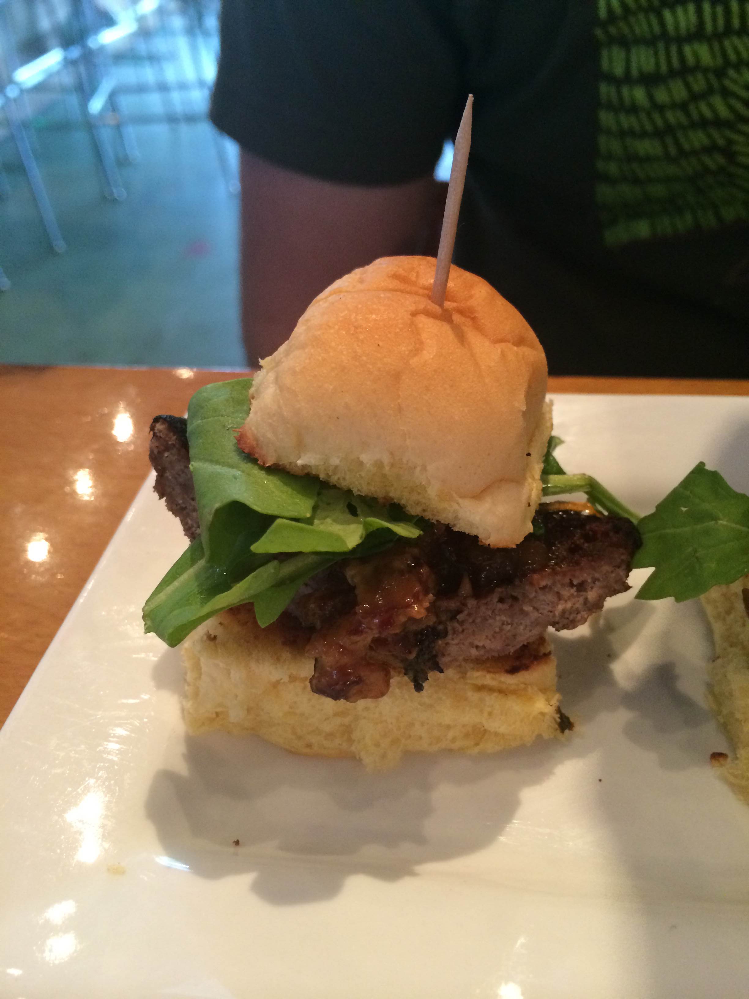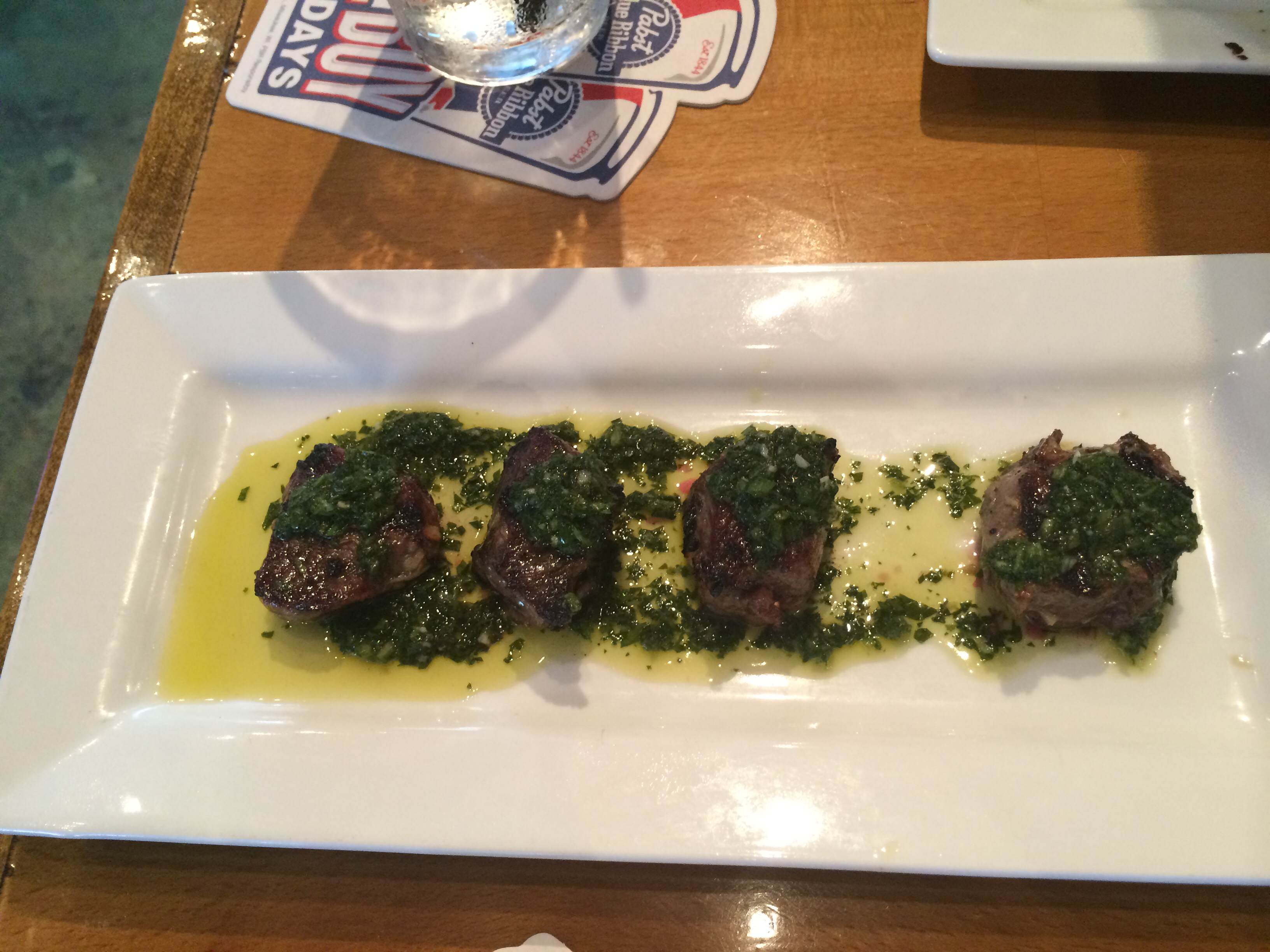 We decided to get something more “meal” feeling for our second round. I selected the buffalo wings (8 for $8), and my husband got the sliders. They were both delicious, but the sliders definitely won that round. The wings were your typical wings (but good!).