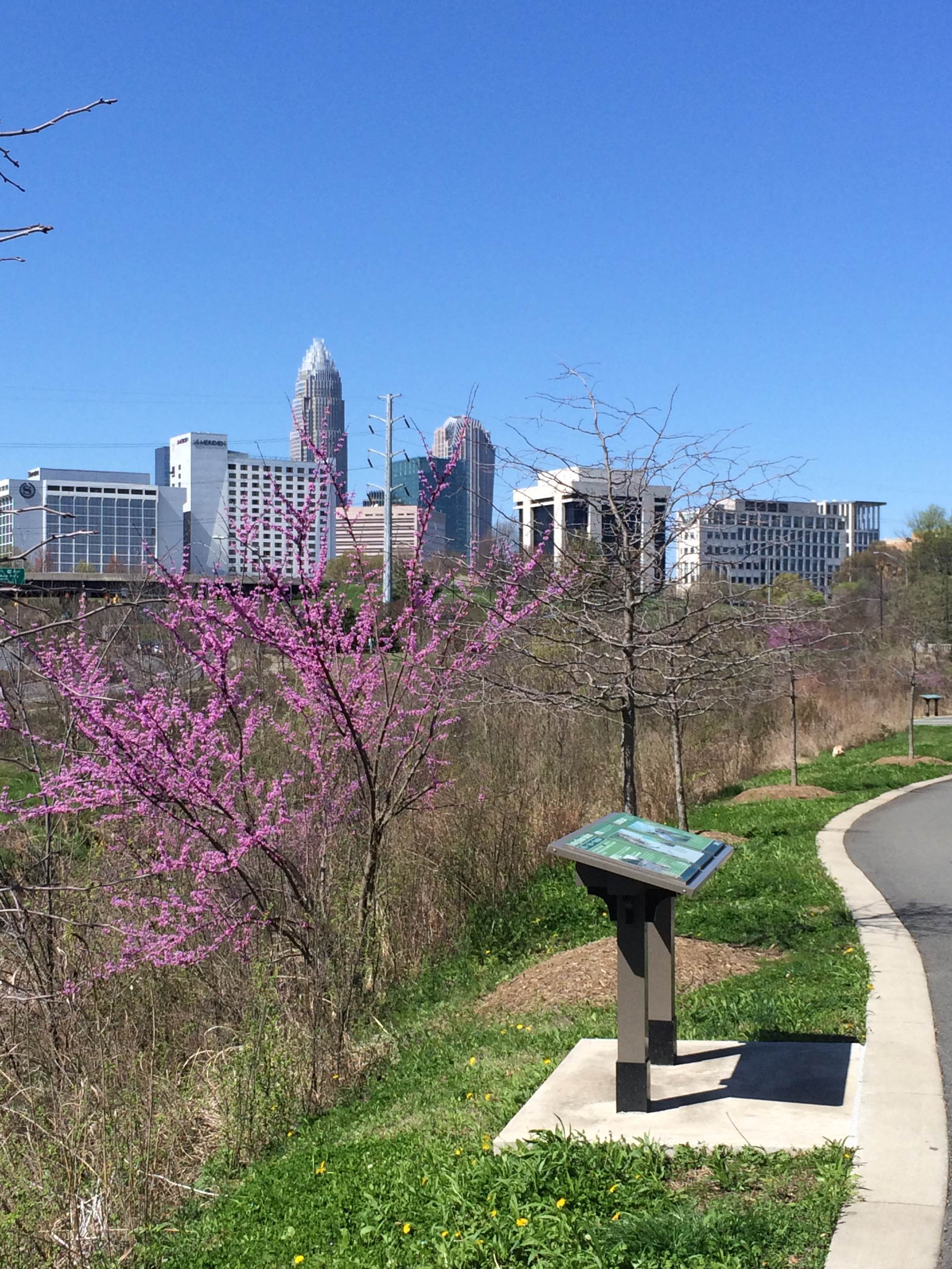 There are a few water fountains strategically placed on the greenway, and restrooms, too (although, the doors were locked to the restrooms yesterday!). The greenway runs along side a creek, which adds some nice scenery to the run. But Springtime in Charlotte is pretty scenic on it’s own.